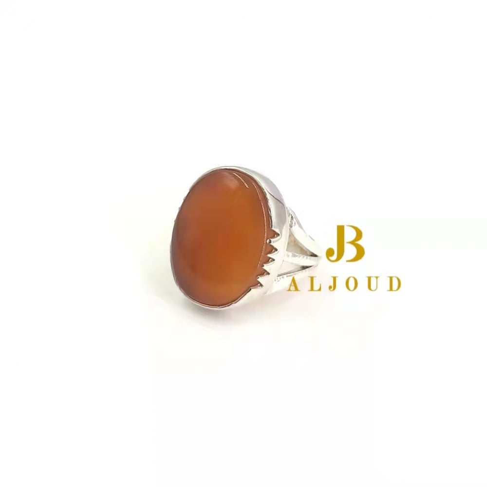 خاتم فضة عيار 925 عقيق يمني يشم T1021