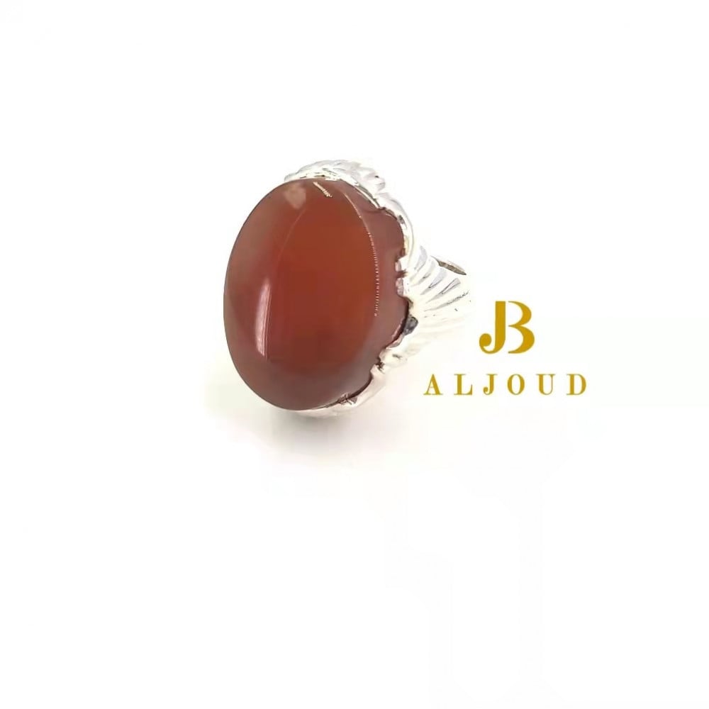 خاتم فضة عيار 925 عقيق يمني كبدي T627