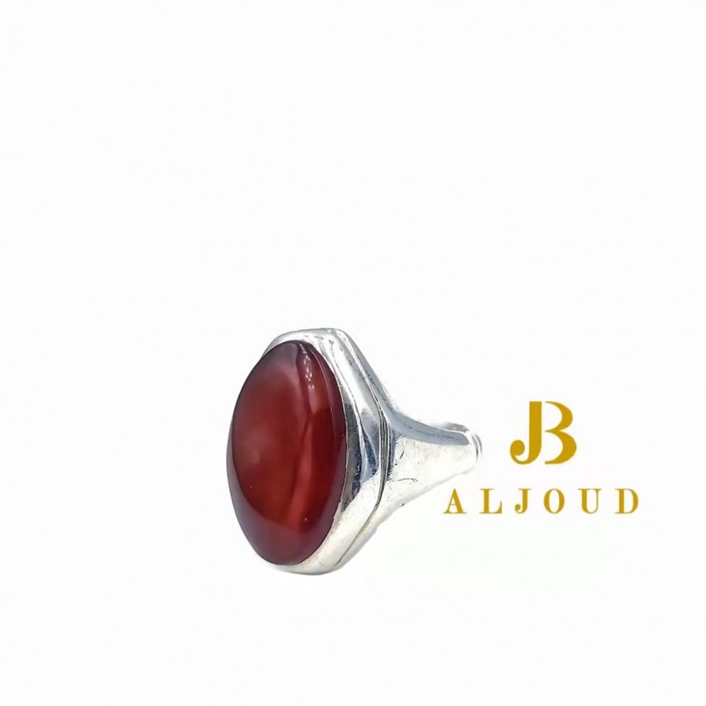 خاتم فضة عيار 925 عقيق يمني مشمشي T277