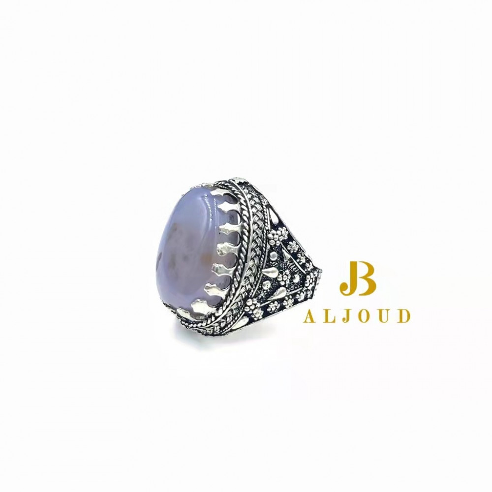 خاتم فضة عيار 925 عقيق يمني مصور T172