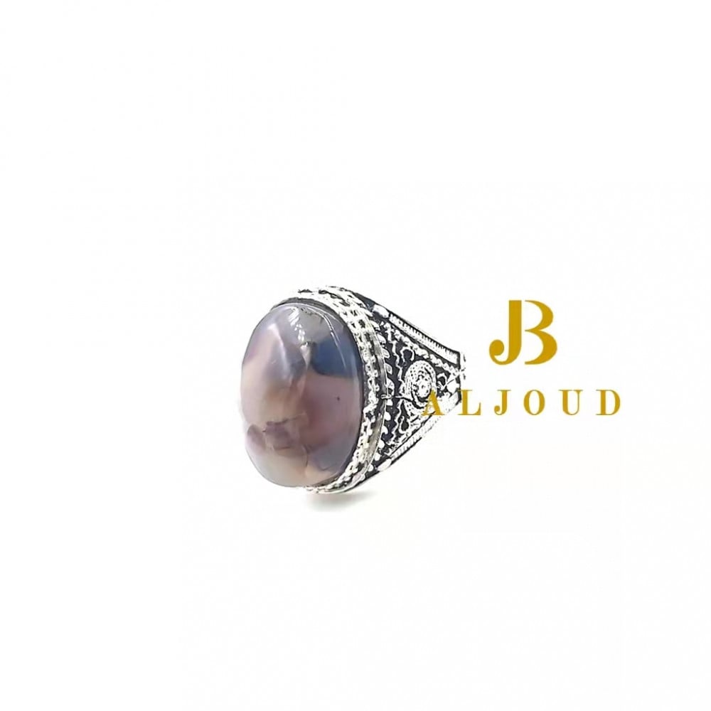 خاتم فضة عيار 925 عقيق يمني مرصع زاركونT1052