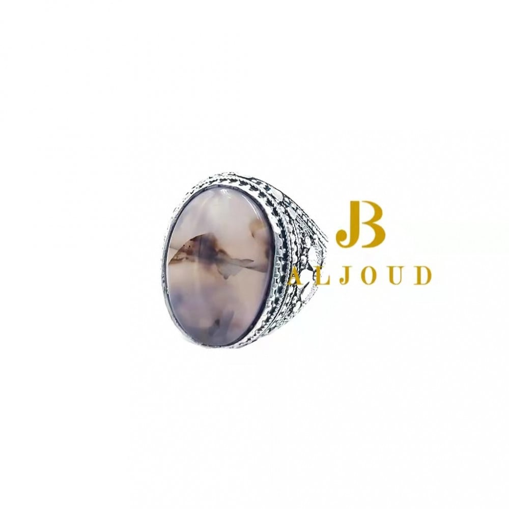 خاتم فضة عيار 925 عقيق يمني مشمشي T747