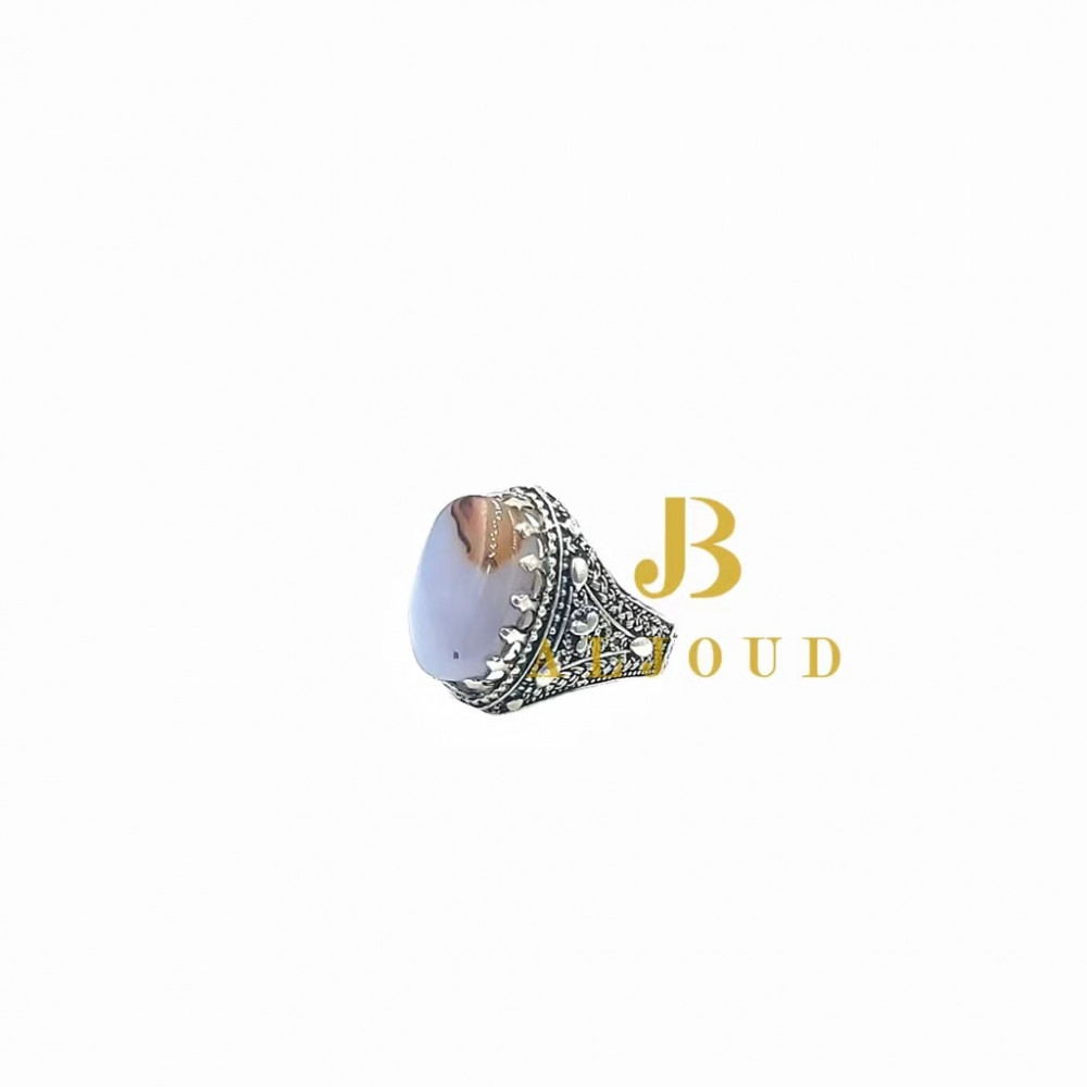 خاتم فضة عيار 925 عقيق يمني مرصع زاركون T1053