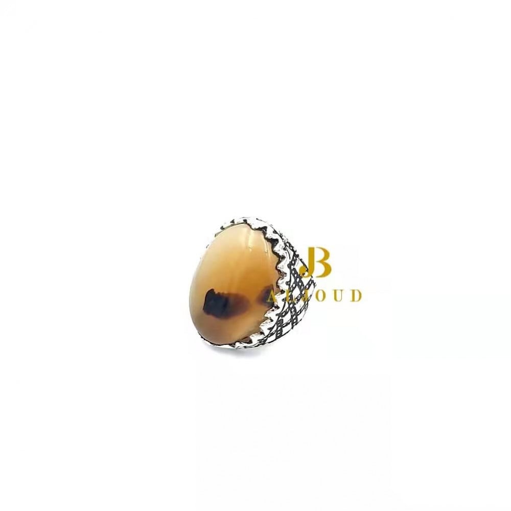 خاتم فضة عيار 925 عقيق يمني مشمشي T563