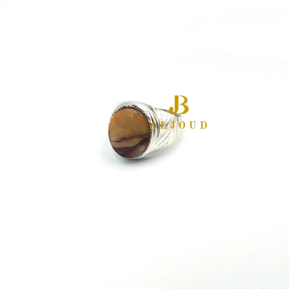 خاتم فضة عيار 925 عقيق يمني كبدي T437